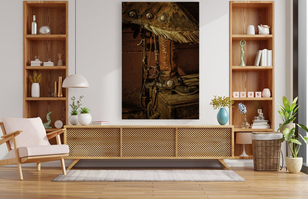 Embrace a piece of American history and Western heritage with the Rustic Cowboy Boot and Chap Print. This art piece not only enhances your space with its rugged charm but also brings a touch of authentic Western storytelling into your home.